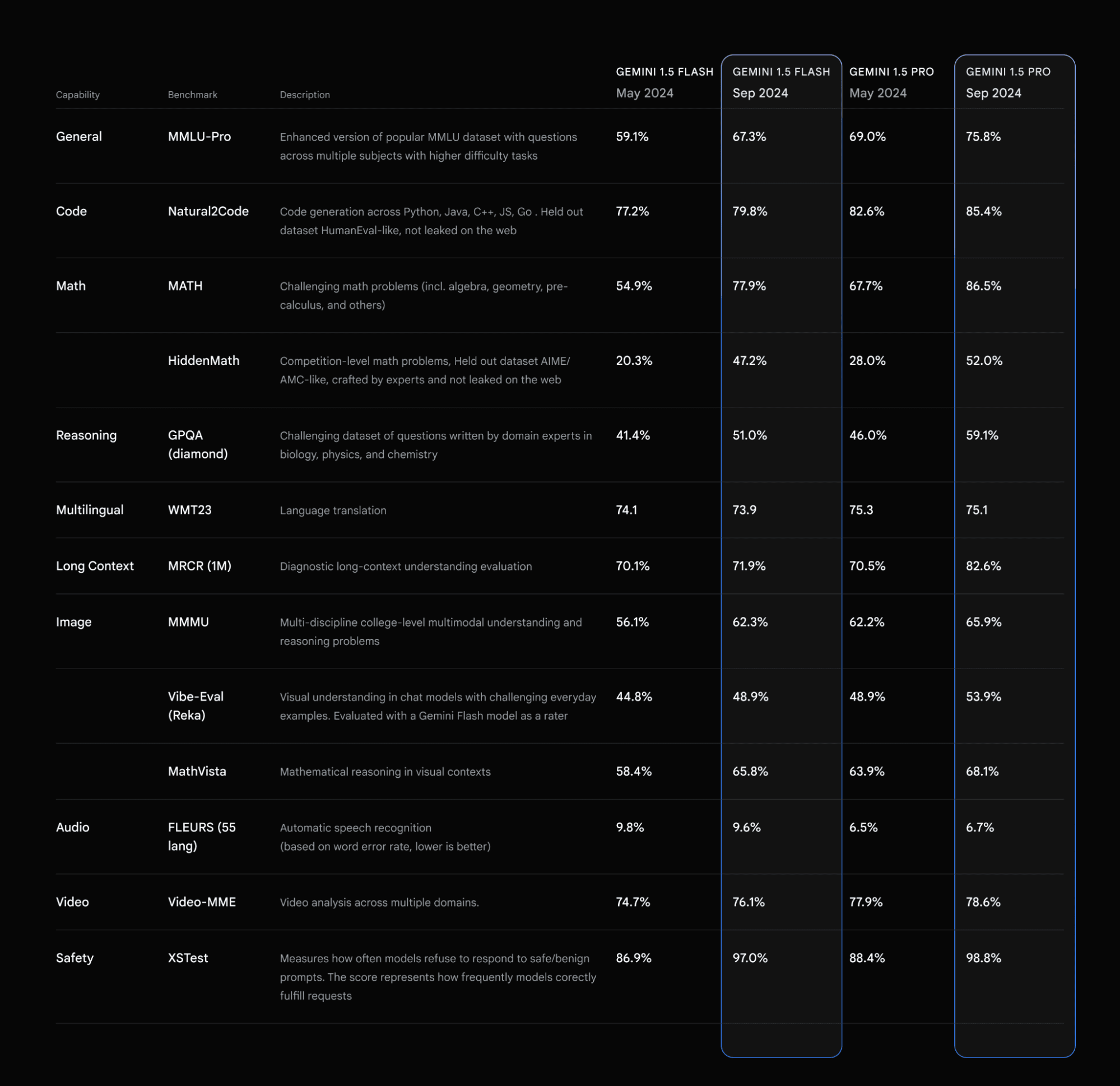 The new Gemini models show impressive gains in several areas: